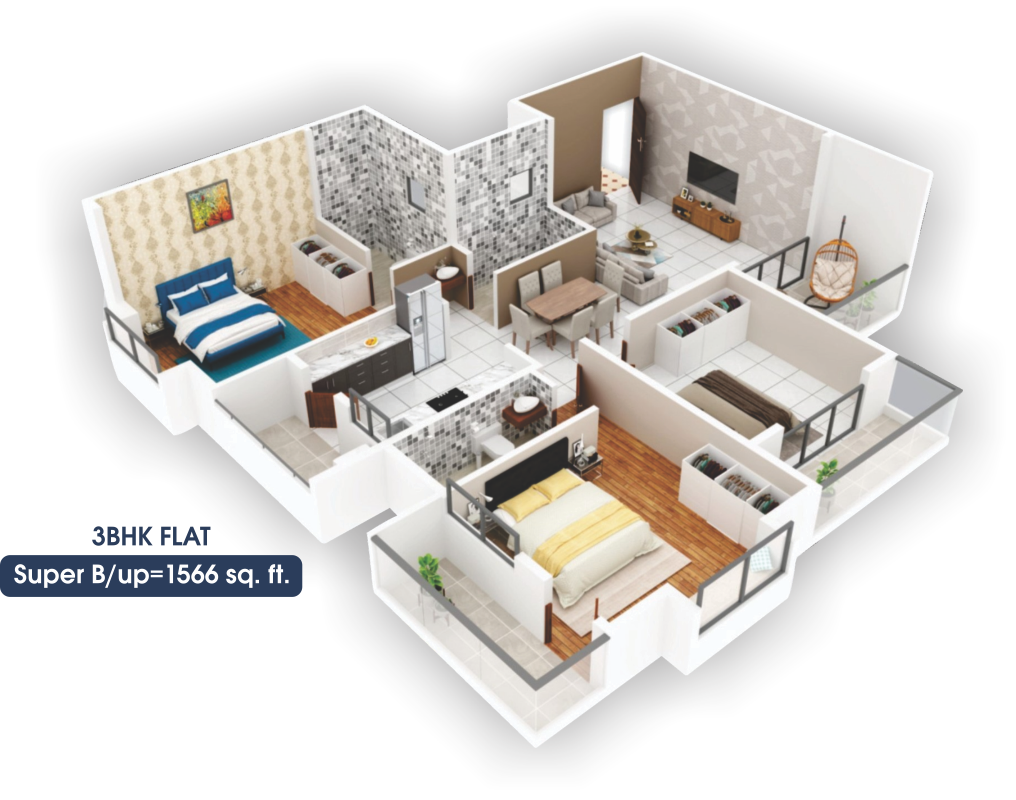 • Flat Size 1242 - 1679 Sq.Ft.